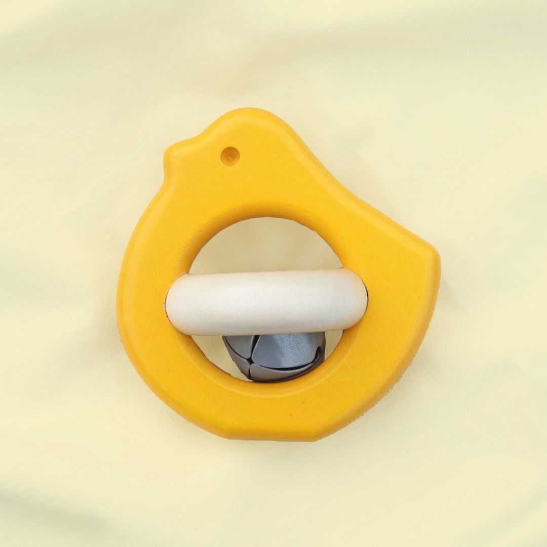 Drewniana grzechotka w kształcie ptaszka z wbudowanym dzwoneczkiem to propozycja przeznaczona dla niemowląt od pierwszych miesięcy życia. Zabawka została zaprojektowana tak, aby wspierać rozwój sensoryczny oraz ćwiczyć podstawowe umiejętności ruchowe dziecka.