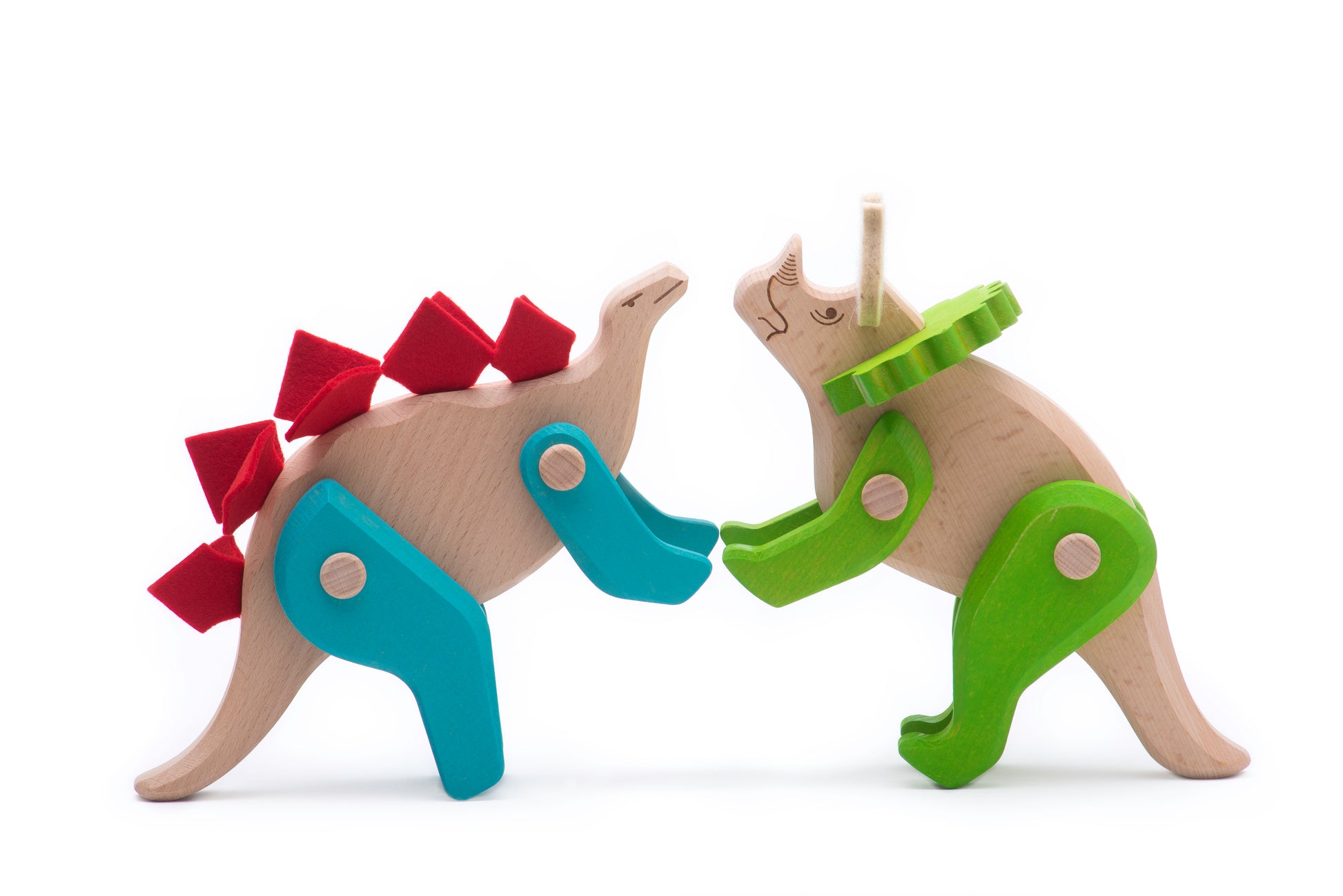 Drewniany stegozaur BAJO to solidna figurka, która wprowadza dziecko w świat dinozaurów poprzez swobodną, kreatywną zabawę. Ruchome elementy oraz miękkie, filcowe płyty na grzbiecie nadają zabawce charakter i zachęcają do odgrywania własnych scenek z prehistorii.