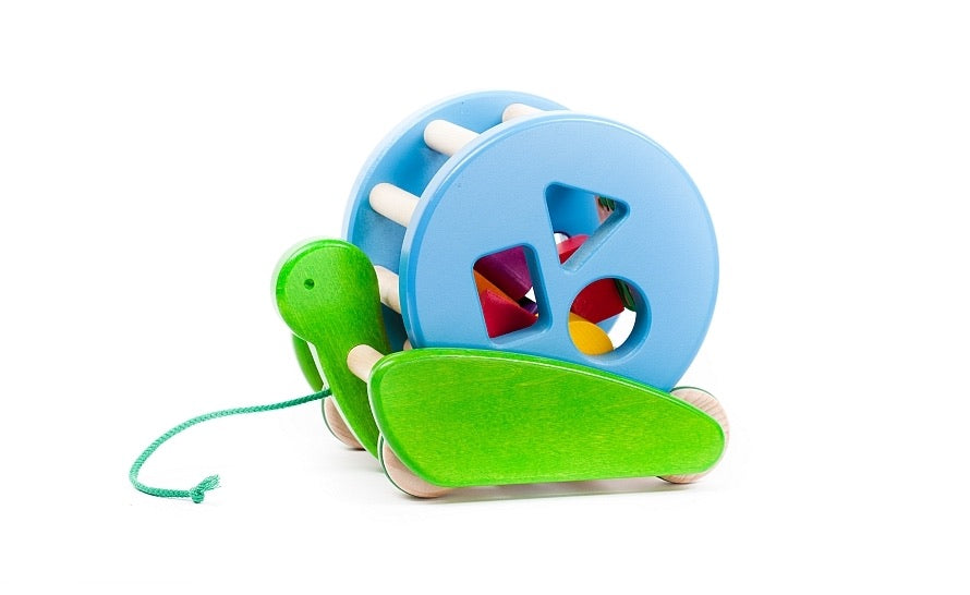 Drewniany ślimak z funkcją sortera i zabawki do ciągnięcia to wielofunkcyjna propozycja dla najmłodszych. Ruchoma skorupa kryje zestaw kolorowych klocków o różnych kształtach, które dziecko może dopasowywać do odpowiednich otworów, ucząc się poprzez działanie. Dzięki sznurkowi ślimak towarzyszy maluchowi również w zabawie ruchowej, zachęcając do chodzenia i odkrywania otoczenia.