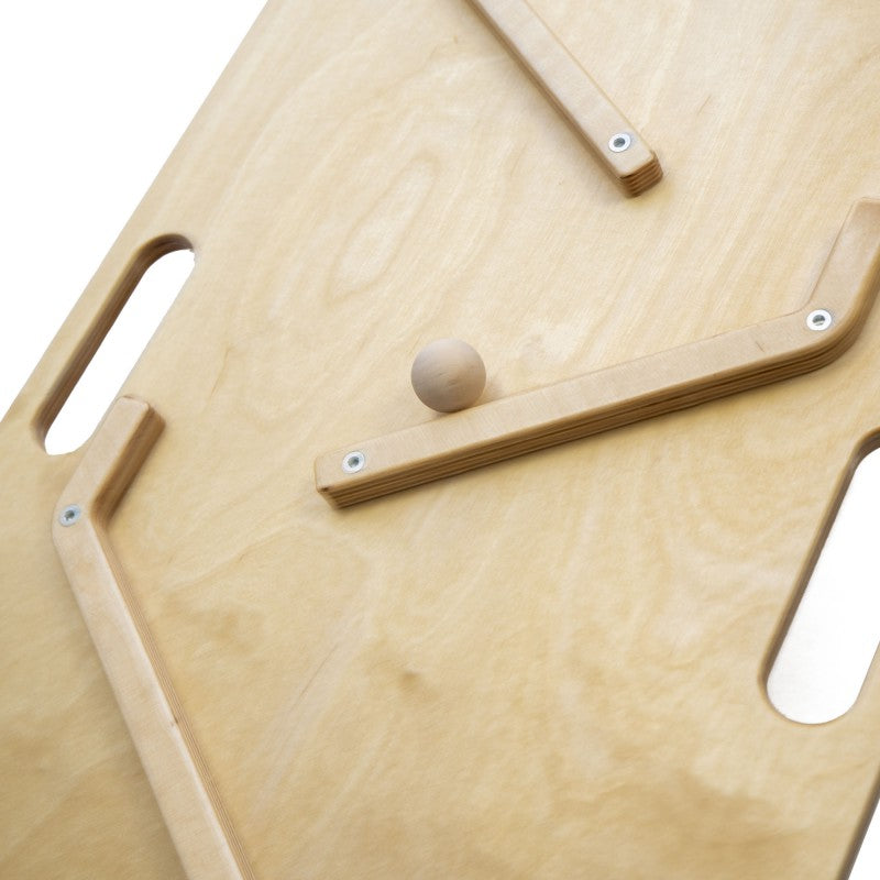 Konstrukcja składa się z sześciu starannie wyprofilowanych torów, po których kulki płynnie zjeżdżają od góry aż do samego dołu. Drewniane kulki dołączone do zestawu są idealnie dopasowane do toru, co zapewnia płynność ruchu i bezpieczeństwo użytkowania.